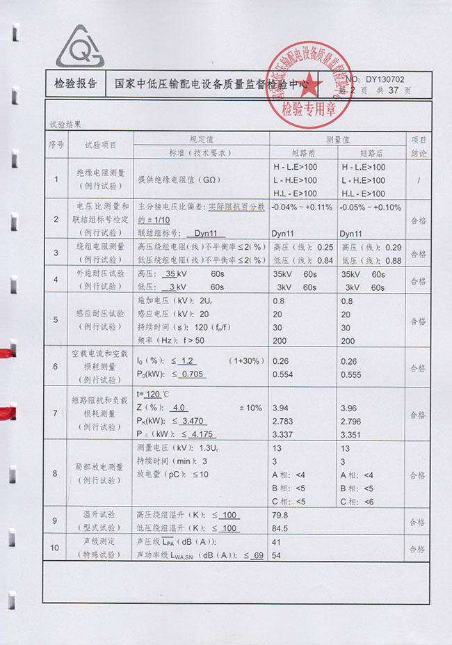 分接范围:(10±2×2.5%)/0.4kV 联结组标号 Dyn11 冷却方式:AN 绝缘耐热等级:F